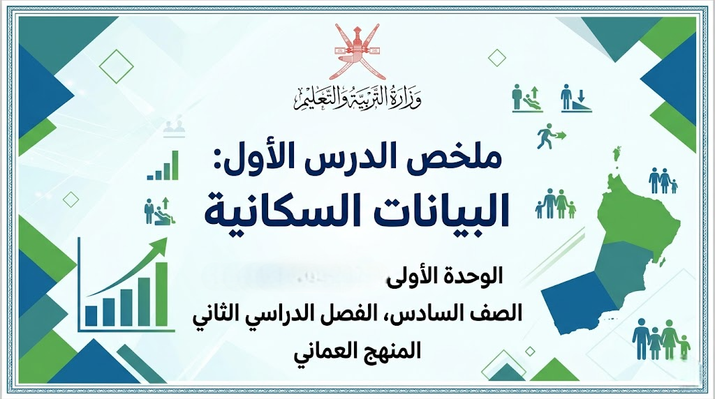ملخص الدرس الأول: البيانات السكانية الوحدة الاولى لمادة الدراسات الاجتماعية للصف السادس الفصل الدراسي الثاني المنهج العماني