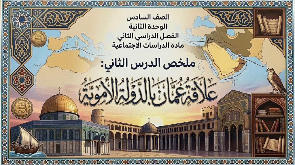 نقدم لكم ملخص الدرس الثاني: علاقة عُمان بالدولة الأموية لمادة الدراسات الاجتماعية للصف السادس الوحدة الثانية الفصل الدراسي الثاني المنهج العماني
